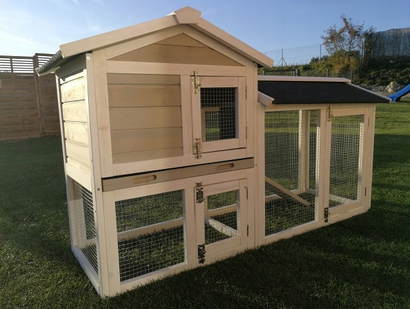 Kogu konstruktsioon on valmistatud kvaliteetsest ja ilmastikukindlast männipuidust ja galvaniseeritud võrgust. Loomadel on piisavalt ruumi värskes õhus ja katuse all. Puurid kaitsevad Teie lemmikuid selliste röövloomade eest nagu mägrad, rebased, kullid jne.