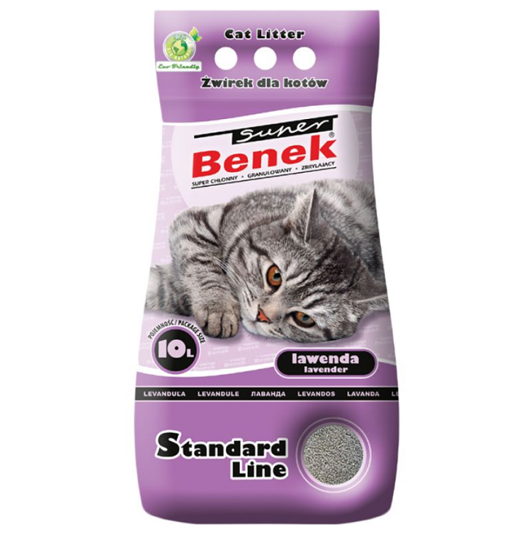 Super Benek Standard on hügieeniline kassiliiv kassidele, mida iseloomustavad korrapärased jämedad terad mõõtmetega 2–5 mm. Need imavad tõhusalt vedelikke ja ebameeldivaid lõhnu, pakkudes head antibakteriaalset kaitset. Terad klombivad kokku, moodustades korrapärased, kompaktsed tükid. Väga imavad, tolmuvabad graanulid, mis ei jää liivakasti põhja külge.