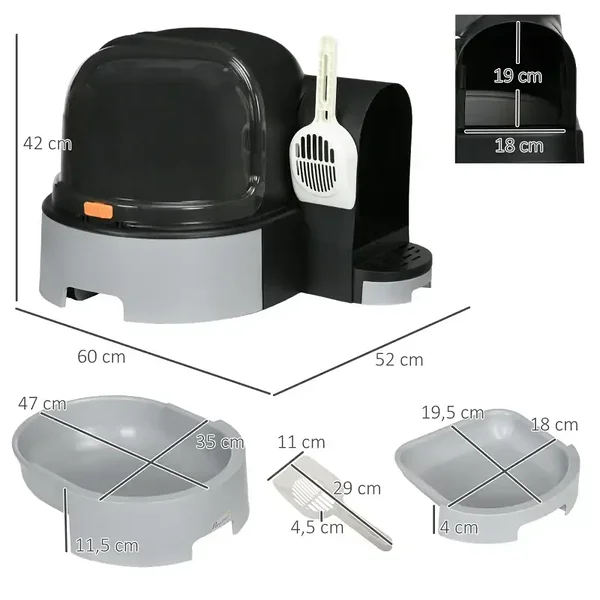 Tänu kahele väljatõmmatavale põrandaalusele ja esiklapile on puhastamine lapsemäng. Tänu kaasasolevale kühvlile saavad kassiomanikud liiva hõlpsalt ära visata. Liivakasti suletud disain pakub teie karvastele sõpradele privaatsemat ja kaitstud kohta, takistades samal ajal lõhnade levikut.