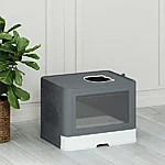 Meie kassipoegadele mõeldud kassiliivakastil on ees sissepääs ja ülaosas väljapääs, mis teeb teie karvasele sõbrale selle hõlpsasti ligipääsetavaks. Ülemises osas on strateegiliselt paigutatud augud, et vähendada liiva mahavalgumist ja hoida põrand puhtana. Varustatud väljatõmmatava sahtliga liivakast hõlpsaks puhastamiseks. Lihtsalt tõmmake sahtel välja, eemaldage jäätmed kaasasoleva kühvliga ja lükake see tagasi.