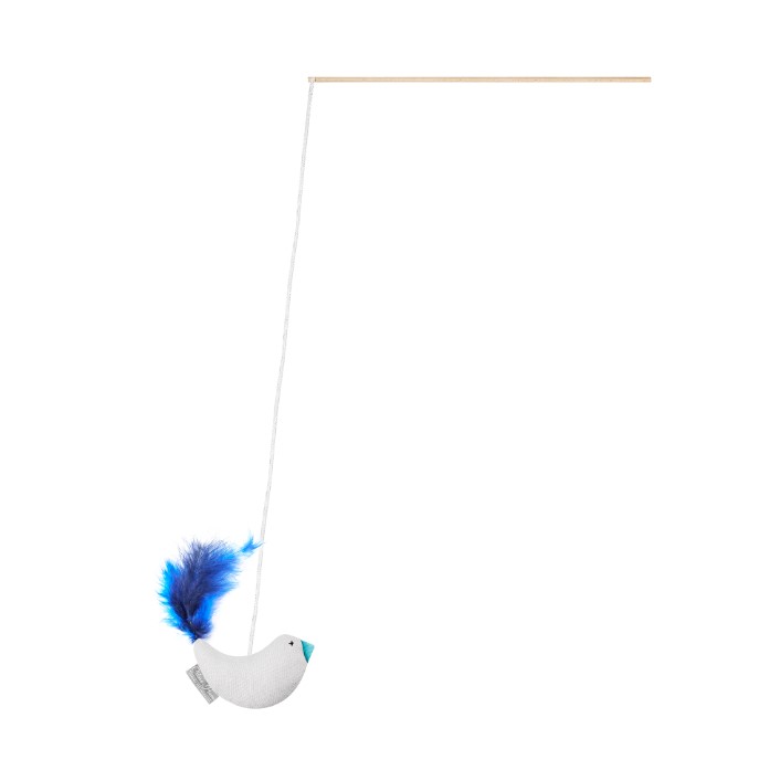 Chloe's Home mänguasi-linnuke LISA on valmistatud kvaliteetsest kangast, sellele on tikitud nina silmad, mängulusti pakub sinine suleke. Mänguasja küljes on nöör ja kepike, mille abil saad koos oma lemmikuga mängurõõmu jagada. Mänguasja sees on naistenõges, mis pakub kassidele väga huvi