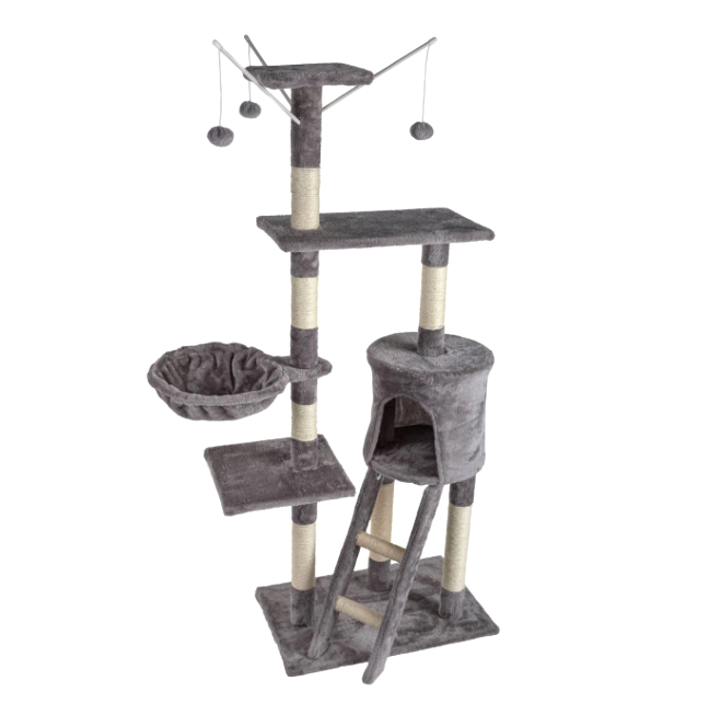 VASTUPIDAV - seda iseloomustab tugev konstruktsioon ja vastupidavus hõõrdumisele. Kolm vaateplatvormi oma valduste jälgimiseks, kolm mängupalli lõbusateks mängudeks. Kraapimispostil on üks lahtine pesa mõnusateks uinakuteks ning kinnine majake hetkedeks, kui kass tahab kõige eest peitu pugeda. Majakesse viiva trepi astmed on mähitud kraapimiseks sobivasse sisalnööri. Kui sisalnöör on kulunud, saab selle hõlpsalt uuega asendada.