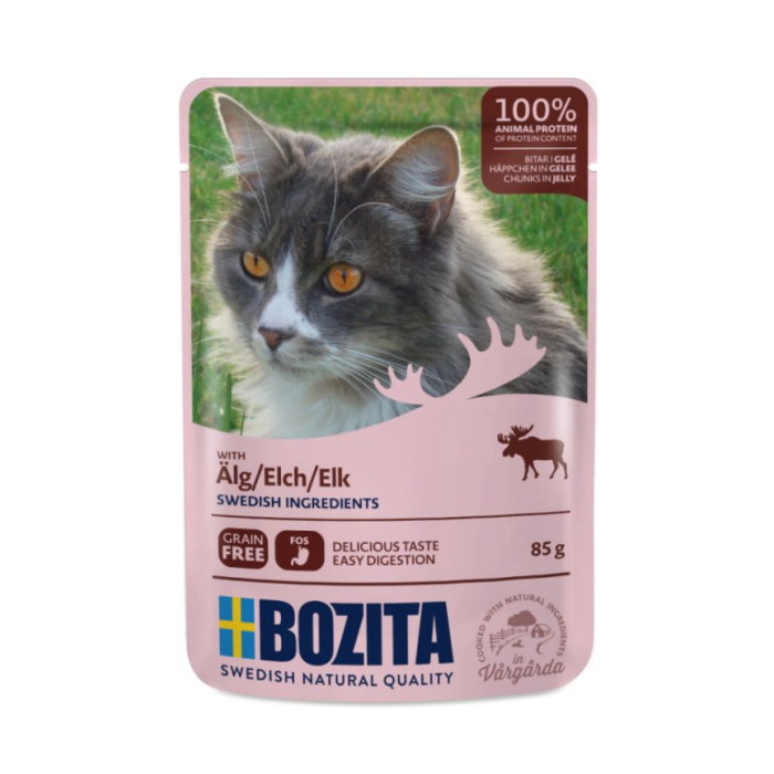 Bozita kassitoit tarretises põdralihaga sisaldab Rootsi metsades vabakasvatuses olevat põdraliha. Tegemist on vabalt looduses kasvanud põrtadega. Põdraliha annab söödale rikkaliku maitse, mida kassid armastavad.