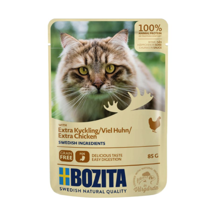 Bozita kassitoit kastmes kanalihaga valmistamisel kasutatakse Rootsist pärit toorainet. Kanaliha pätineb tehasele lähedalasuvatest farmidest. Sööt sobib hästi toitu valivatele kassidele.