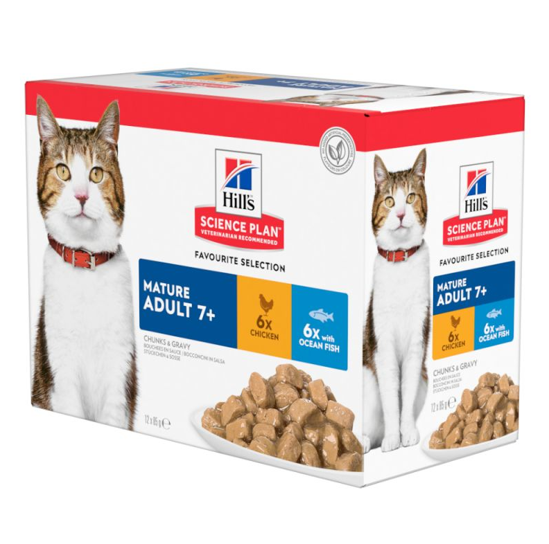 Hill's Science Plan Mature Adult on spetsiaalselt vananevatele kassidele mõeldud toit alates 7. eluaastast. Toit varustab neid kõrgekvaliteetsete valkudega, mida on äärmiselt lihtne seedida ja mis hõlbustavad loomal tervisliku kehakaalu saavutamist ja säilitamist.