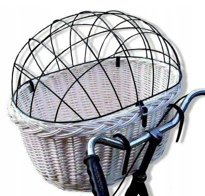 Punutud transpordikorv jalgratta juhtrauale, korvi küljes on metallist painutatud torud, mis kinnituvad üle juhtraua. Korvil on pealmine metallist võre, mis kinnitub kolme nahast rihmaga (reguleeritavad) korvi külge, et Sinu lemmik ei saaks sõidu ajal korvist välja hüpata. Metallist võre on täielikult eemaldatav, muutes korvi kasutamise eesmärki - saad seda kasutada näiteks lihtsalt rattakorvina asjade hoidmiseks. Korvi maksimaalne kandevõime 15 kg.