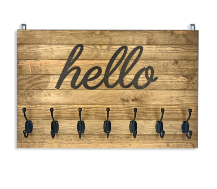 EmRa isikupärastatav rihmade/riiete nagi HELLO 82x50cm, naturaalne puit
