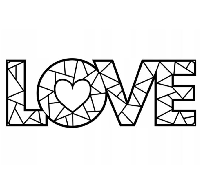 SMED geomeetriline metallist seinakaunistus LOVE I , must/valge