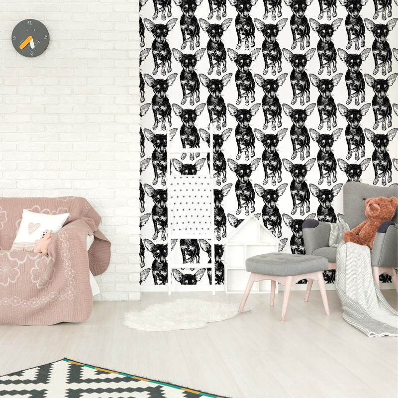 Seinatapeet CHIUAUA Pencil Sketch, must-valge