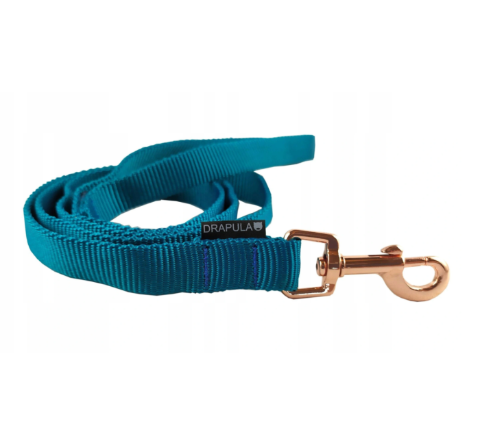 Erksat ookeanisinist värvi jalutusrihm kuldse metallkinnitusega.