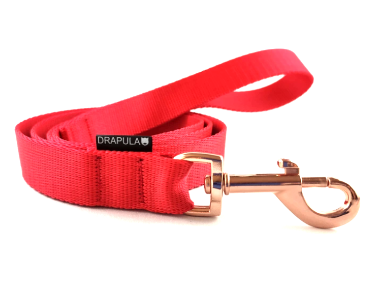 Punane jalutusrihm edevalt kuldse metallkinnitusega.