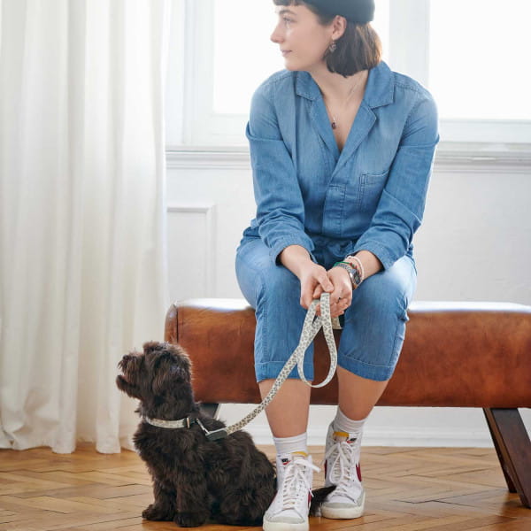 Metallkarabiin on kaetud niklikihiga, et see oleks vastupidavam muutuvatele ilmastikutingimustele. Rihma käepide on vooderdatud ja kaetud pehme neopreeni kihiga, mis parandab haardumist nii, et rihm püsib pehmelt ja kergelt käes - see ei pöörle, võimaldades neljajalgse pidevat juhtimist. Laikude kujul olev kaunistus on valmistatud peegeldavast ja fluorestseeruvast materjalist (jalutusrihm helendab pimedas), tänu millele võite olla kindel, et teie koer on pimedas hästi nähtav.