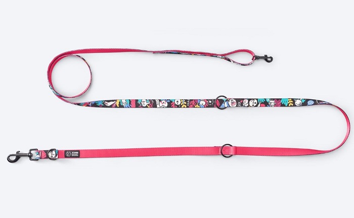 Lõbus ja kirju jalutusrihm, valmistatud kvaliteetsest ja tugevast materjalist. Rihmal on neli erinevat pikkusastet - 120 cm, 140 cm, 175 cm ja 240 cm, tänu millele saad vajadusel hoida oma lemmikut enda lähedal või anda talle pikema rihma otsas rohkem vabadust. Pikkuse reguleerimiseks on rihma külge kinnitatud aasad, mille külge kinnitub karabiiniga ots.