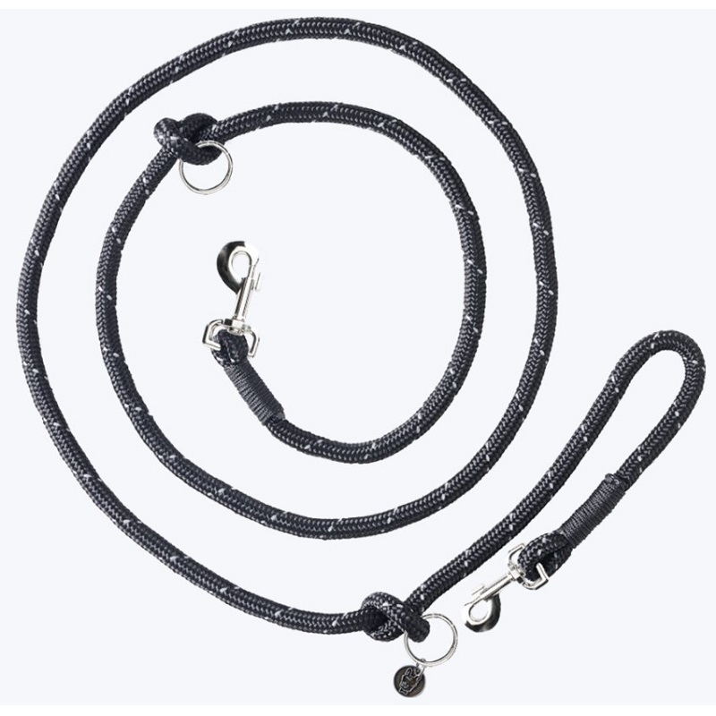 Jalutusrihm on valmistatud tugevast kvaliteetsest polüesternöörist. Tänu sõlmele ja rõmnage saad hõlpsasti reguleerida rihma pikkust. Jalutusrihmal on hõbedases toonis karabiinid ja rõngad. Lisaks oli läbi nööri põimitud helkurniit.
