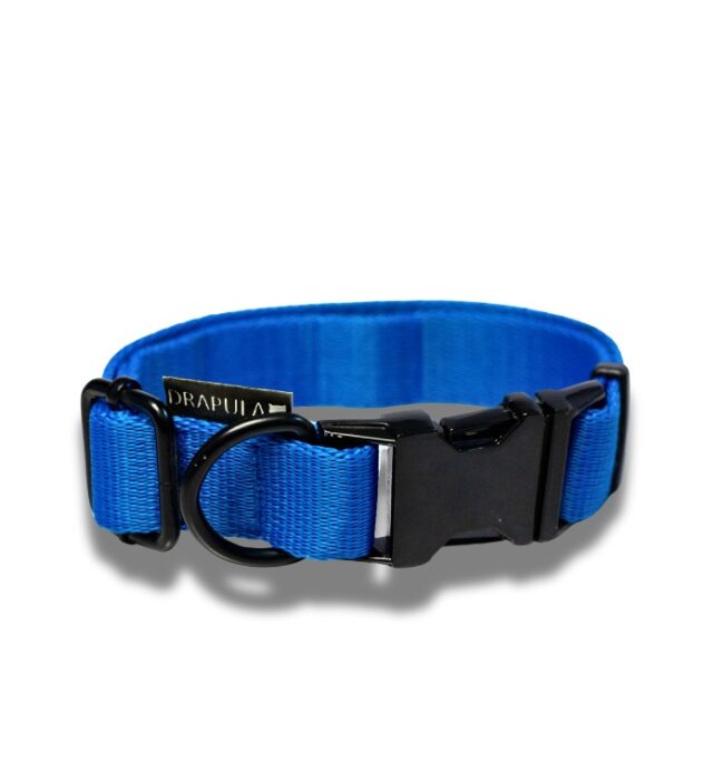Sinine elegantne kaelarihm mustade kinnitustega. DURAFLEX lukustussüsteem.