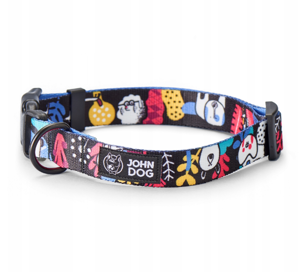 Lõbus ja kirju kaelarihm koertele, valmistatud kvaliteetsest ja tugevast materjalist. Rihma sisemine pool on sinist värvi. Rihma kaunistab John Dog Barcelona muster, kinnituseks on plastikust pistlukk. Rihma pikkus on reguleeritav, saadaval neljas suuruses: