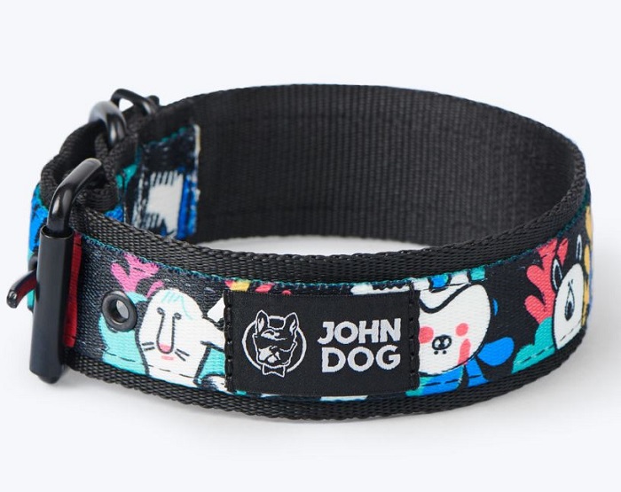 Tugev ja lai (4cm) kaelarihm suurtele koertele. Plastikust kinnituse asemel on tugev metallist pannal ning kolm auku pikkuse reguleerimiseks. Saadaval neljas suuruses.