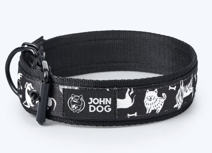 Tugev ja lai (4cm) kaelarihm suurtele koertele. Plastikust kinnituse asemel on tugev metallist pannal ning kolm auku pikkuse reguleerimiseks. Saadaval neljas suuruses.