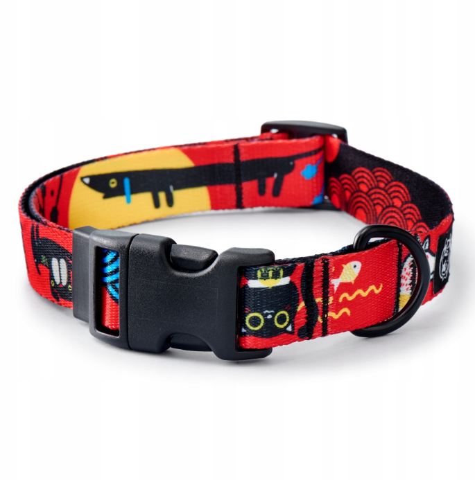 Kerge ja mugav kaelarihm koertele, valmistatud kvaliteetsest ja tugevast materjalist. Rihma kaunistab Jaapanist inspireeritud muster, kinnituseks on plastikust pistlukk. Rihma pikkus on reguleeritav, saadaval neljas suuruses: