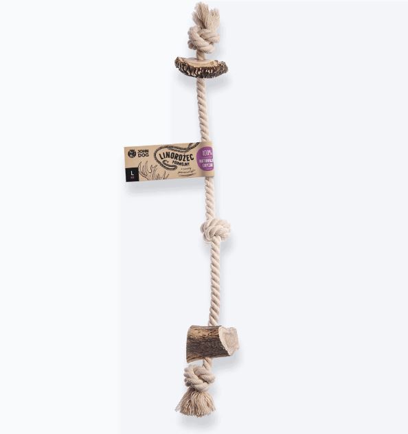 2-in-1 mänguasi - kombinatsioon puuvillasest köiest ja looduslikust närimisosast. Närimisosa on valmistatud hirve sarvedest - risti lõigatud sarvetükk pehmeneb sülje toel ja muutub seeläbi koerale kergelt näritavaks.