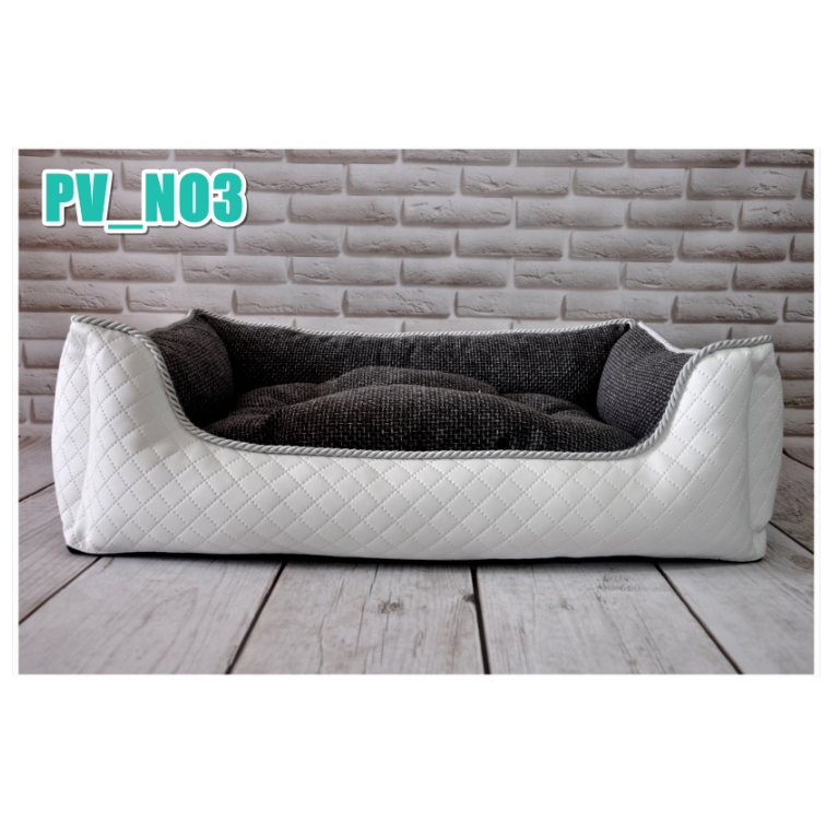 Siesta koerapesa "Demure PV_N03", valge tepitud ökonahk + hallikas kangas