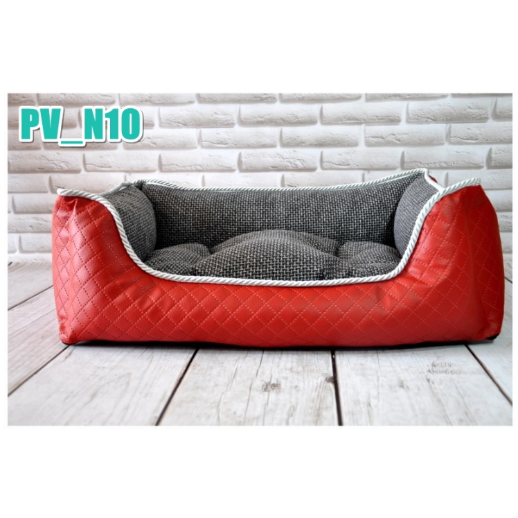 Siesta koerapesa "Demure PV_N10", punane tepitud ökonahk + hallikas kangas