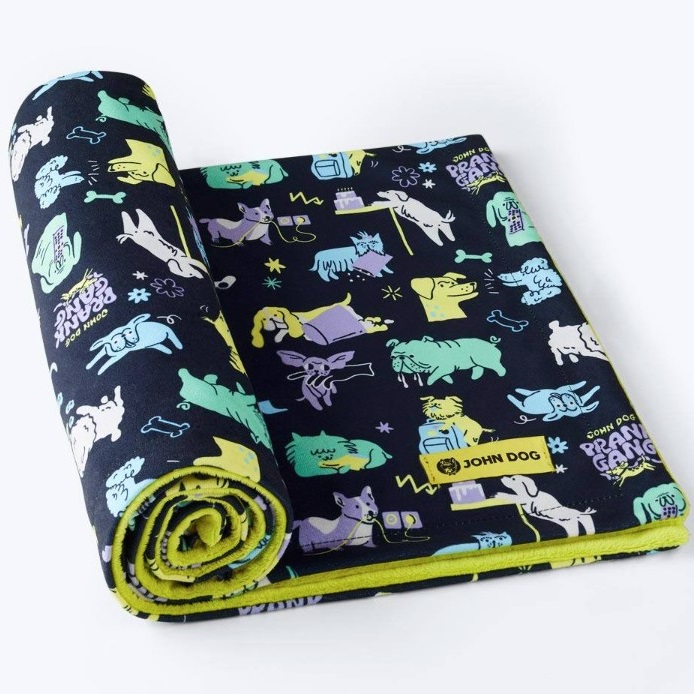 Kasulik kodus, reisil või autos. Saadaval suuruses 75 cm x 100 cm, tänu millele mahub see sõna otseses mõttes kõikjale! Tekki kaunistab John Dog Prank Gang kollektsiooni muster. Lisa komplekti teisi Prank Gang kollektsiooni tooteid ja avasta maailma hipsteristiilis!