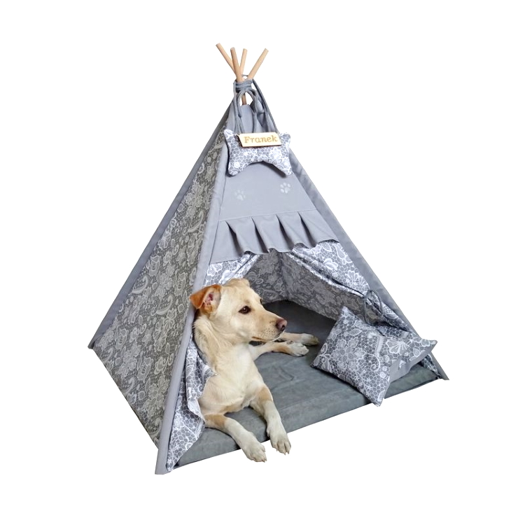 puudust nö katusest peakohal. Tipi telgid on selleks “ilus” lahendus. Hall pitsiline kangamuster lisab kodusesse interjööri romantilisust.
