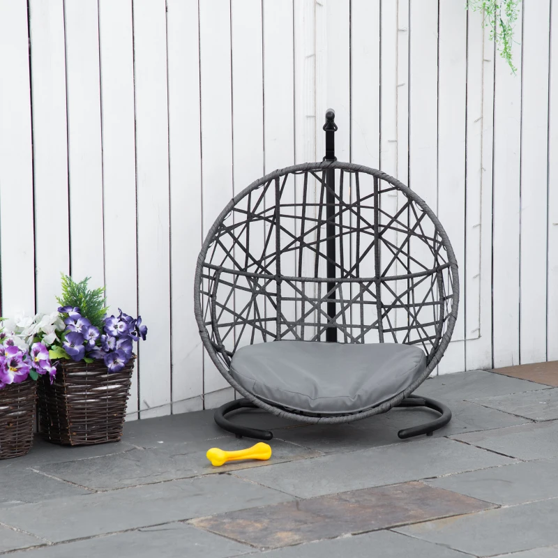 BARK rotangist ripptool koertele/kassidele õue või tuppa, hall + must 60cm x 53cm x 76cm