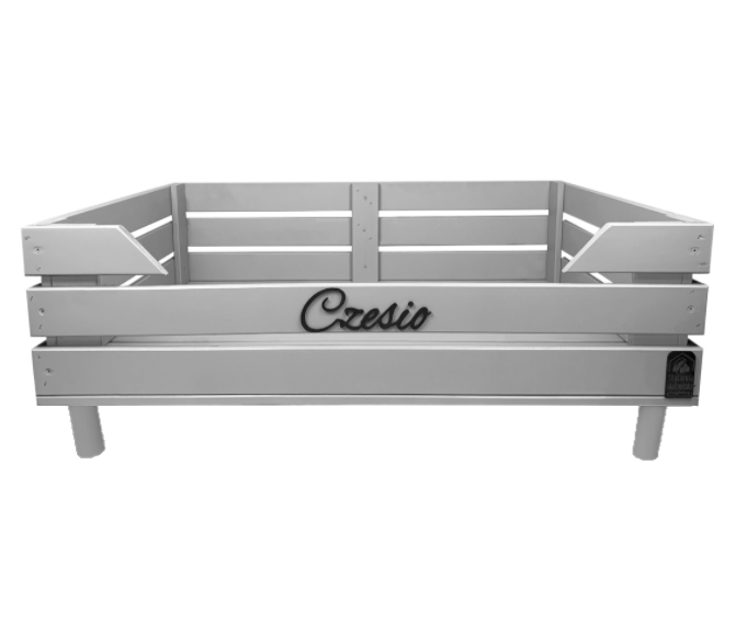 EmRa puidust nimeline koeravoodi jalgadel, hall, s. S-XL