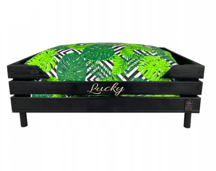 EmRa puidust nimeline koeravoodi jalgadel, must raam + madrats (erinevad värvid) s. S-XL