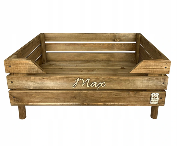 EmRa puidust nimeline koeravoodi jalgadel, naturaalsest puidust, s. S-XL