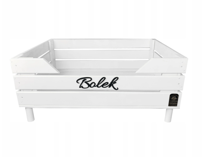 EmRa puidust nimeline koeravoodi jalgadel, valge, s. S-XL