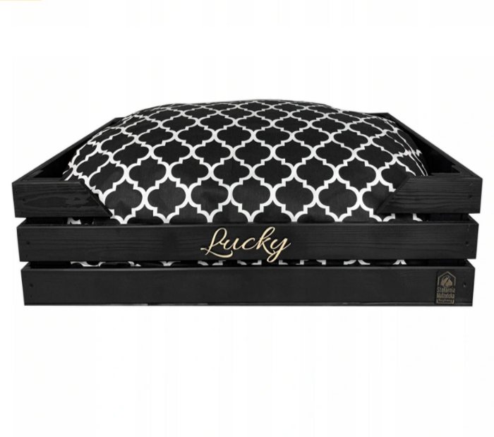 EmRa puidust nimeline koeravoodi must raam + madrats (erinevad värvid) s. S-XL
