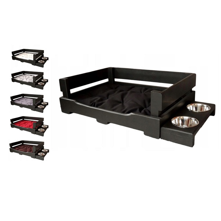 Wiklin täispuidust koeravoodi koos toidukausialusega, must raam, erinevad padja värvid