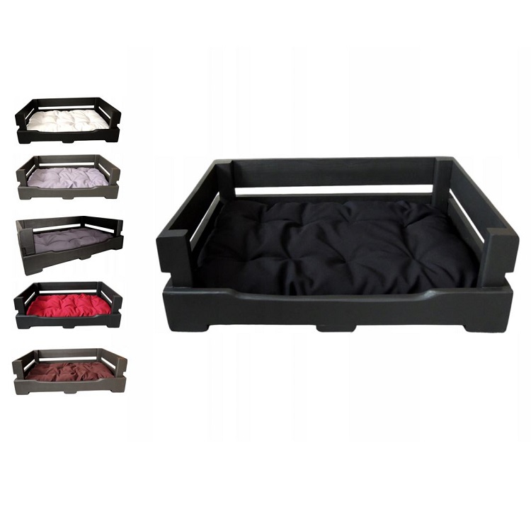 Wiklin täispuidust koeravoodi, must raam, erinevad padja värvid