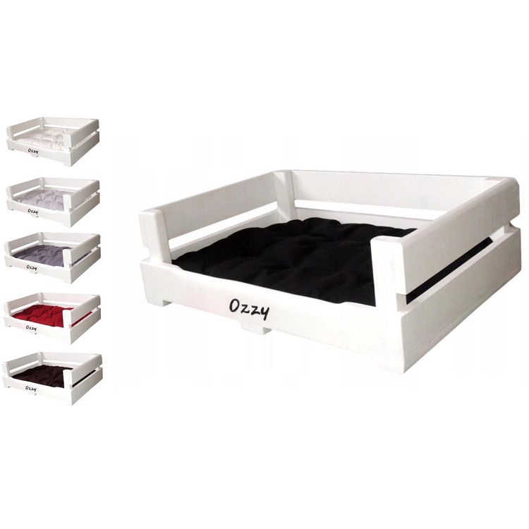 Wiklin täispuidust koeravoodi, valge raam, erinevad padja värvid