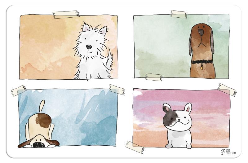 Rõõmsameelne kausialusmatt koertele. Matt on valmistatud polüpropüleenist, mis oma kumja pealispinnaga vähendab kausside liikumist.