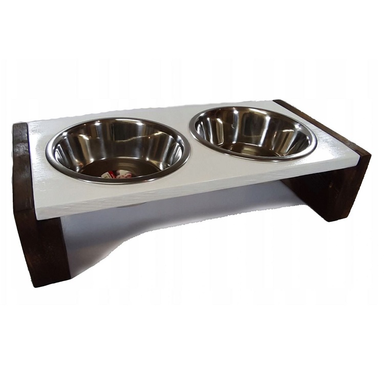 LEON täispuidust toidukausialus jalgadel 39x22x8,5cm + kausid 2x0,9l