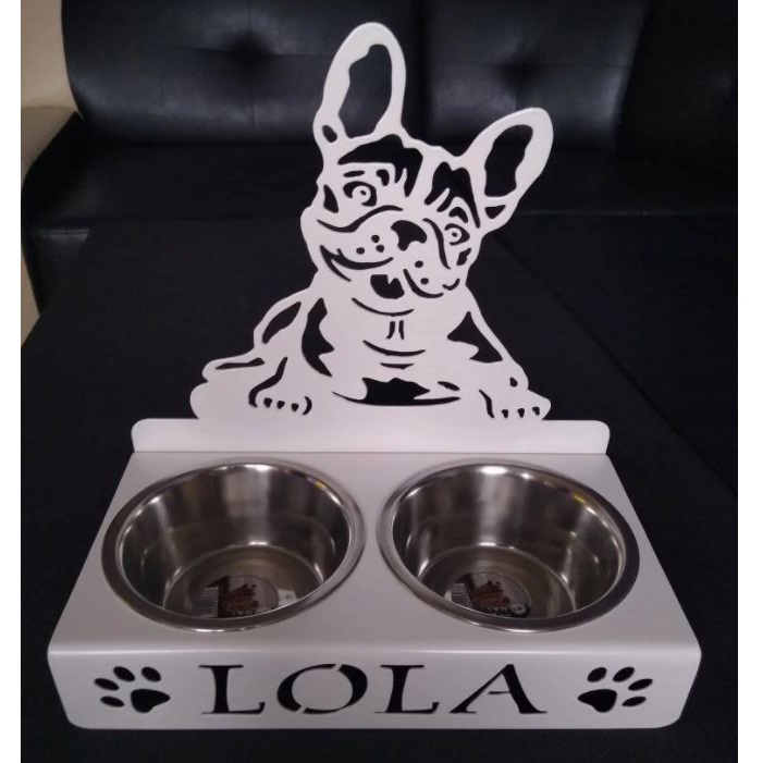 MET toidukausialus 30x16x35 cm +kausid 2x0.45l, Prantsuse buldog, personaalse nimega, valge