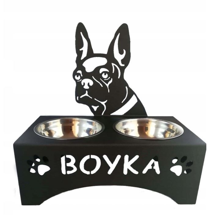MET toidukausialus 40x20.5x41 cm +kausid 2x0.9l, Prantsuse buldog, personaalse nimega, must