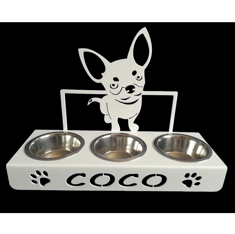 MET toidukausialus 45x16x35 cm +kausid 3x0.45l, Chihuahua, personaalse nimega, valge