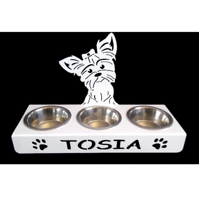 MET toidukausialus 45x16x35 cm +kausid 3x0.45l, Jorkširi terjer, valge