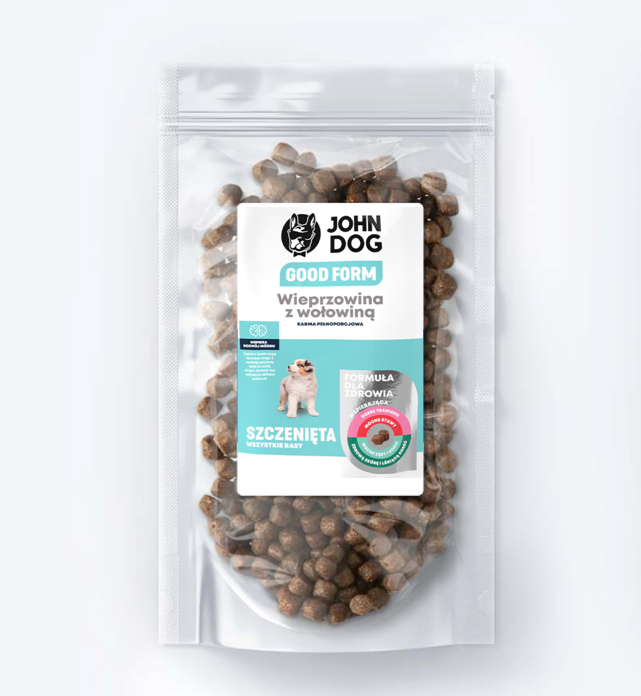 John Dog gluteenivaba koera täissööt kutsikatele, sealiha+veiseliha+riis, NÄIDIS 120g *2.50€