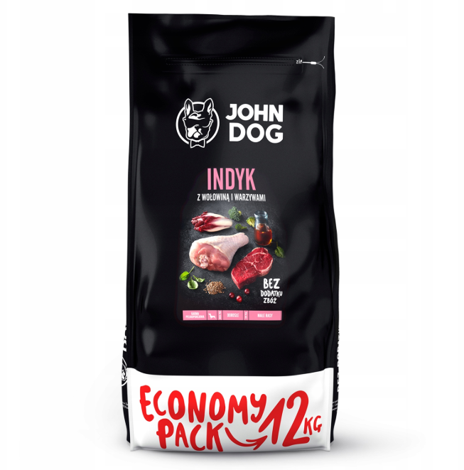 John Dog INDYK teraviljavaba koera täissööt väikestele tõugudele, kalkun+veiseliha 12kg *75€