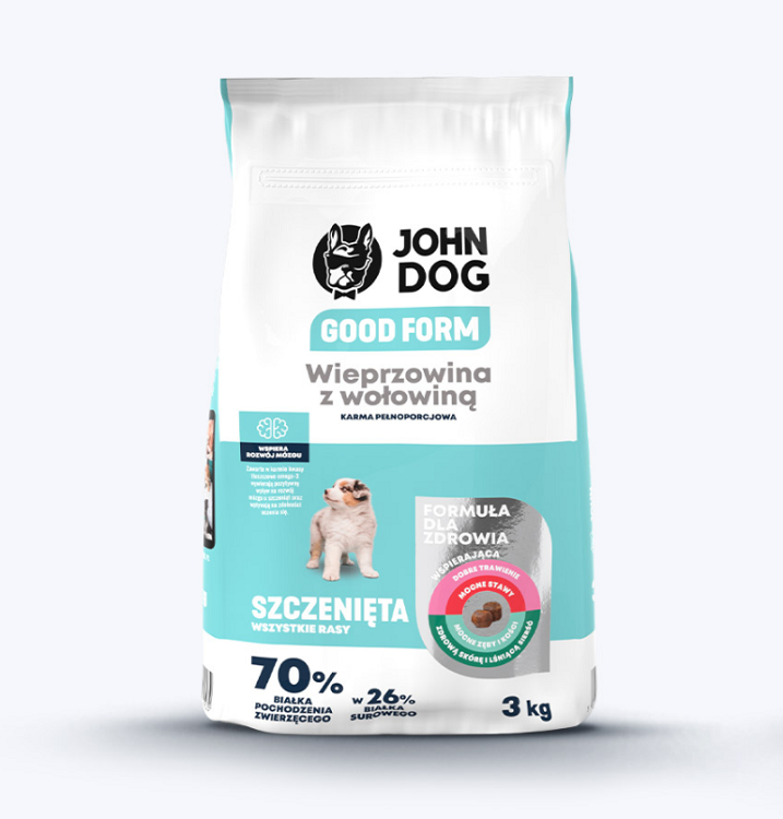 John Dog gluteenivaba koera täissööt kutsikatele, sealiha+veiseliha+riis, 3kg *22€