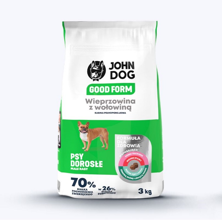 John Dog gluteenivaba koera täissööt väikestele tõugudele, sealiha+veiseliha+riis, 3kg *21€