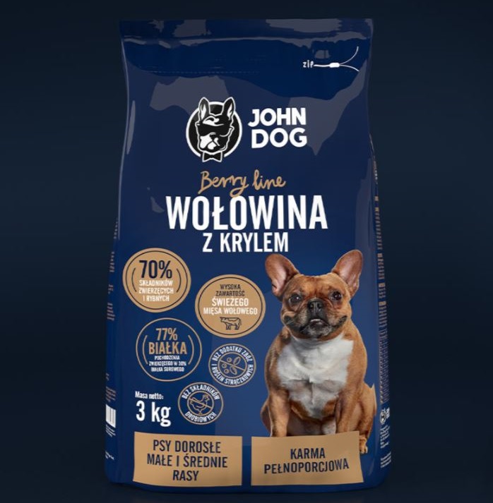 John Dog BERRY LINE teraviljavaba koera täissööt väikestele ja keskmistele tõugudele, veiseliha+kirill, 3kg *a. 32€