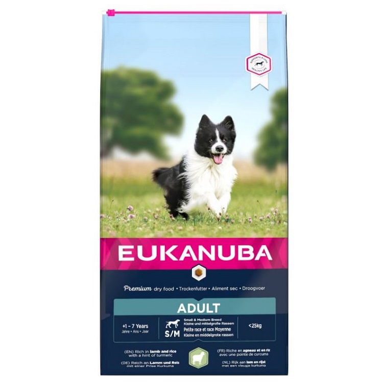 Eukanuba Adult Small and Medium Breed (lambaliha ja riisiga) on kohandatud väikeste ja keskmiste tõugude täiskasvanud koerte (nt taksid, kollid, mopsid ja kokerspanjelid) vajadustele. Lambaliha ja riis on kergesti seeditavate kalorite allikad, mida tundliku mao ja õrna nahaga koerad hästi taluvad. Selles sisalduvad prebiootikumid ja kuivatatud peedimass tagavad tasakaalustatud soolefloora. Oomega-3 ja -6 rasvhapped võivad avaldada positiivset mõju teie lemmiklooma nahale ja karvkattele. On tõestatud, et selle toidu söömine vähendab karva väljalangemist kuni 80%.