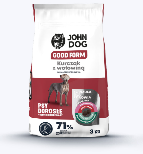 John Dog gluteenivaba koera täissööt keskmistele ja suurtele tõugudele, kana+veiseliha 3kg
